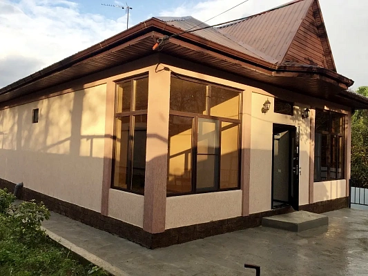 Одноэтажный коттедж общей площадью около 130 кв.м. Планировка: 3 спальни, кухня-гостиная, санузел и коридор. Цоколь (подвальное помещение) без отделки. Электричество 3 фазы 15 кВт, вода центральная, установлен ЛОС, газовая труба проходит по границе участка (подключение оценили в 150-200 т.р.). Земельный участок 5,5 соток, ровный. На территории парковка для автомобиля и зона отдыха (беседка). Выполнена полностью вся внутренняя и внешняя отделка, установлена мебель, все новое, в доме никто не жил. Очень хорошая асфальтированная дорога, остановка общественного транспорта рядом, школа, магазины, аптеки - все в шаговой доступности, до моря менее 1,5 км.