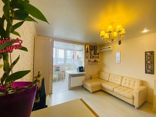 Квартира расположена на 10 этаже, угловая, общей площадью в 45 кв.м., с панорамным видом на город и горы.