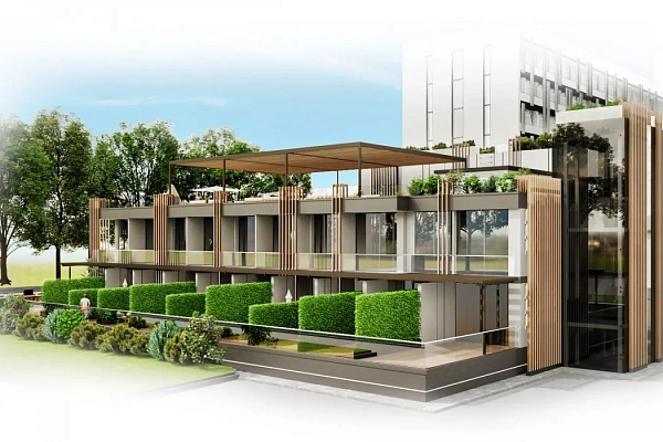 Преимуществом комплекса является собственная благоустроенная территория с ландшафтным дизайном, зонами отдыха, SPA, бассейном и фитнес-центром.