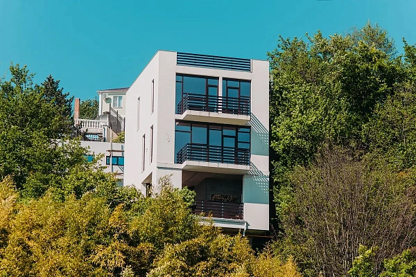 В доме выполнена предчистовая отделка: штукатурка, стяжка пола (с подогревом), разводка электрики и сантехники, выводы под кондиционеры.