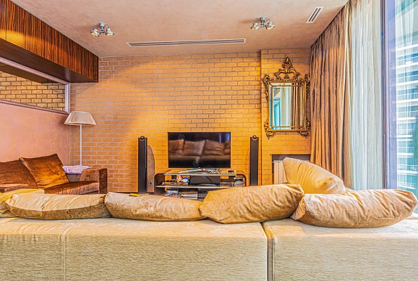родается квартира в элитном жилом комплексе "Королевский Парк", Квартира распланирована на кухню- гостиную и две спальни. Элитная квартира площадью 93 кв.м. расположена на среднем этаже жилого комплекса с видом на парк и море. Отделка в квартире выполнена из дорогих, высококачественных материалов. Мебель от ведущих фабрик Италии. Бытовая техника hi класса . Сантехника производство Германии . В отделке квартиры использован натуральный камень. Натуральная паркетная доска производства Италии.