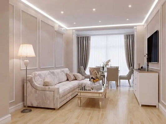 Квартира предоставлена в чистовом формате и с шикарным видом на спа-зону и море. Имеется балкон площадью 11м, который прекрасно позволит Вам поставить столик со стульями, представьте солнечное утро, ароматный кофе и шикарный вид на море.