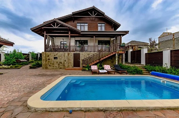 Также на территории участка расположен отдельный дом с сауной и бильярдной комнатой. Помимо этого на территории участка расположен круглогодичный бассейн с подогревом и подсветкой, спортивная площадка (баскетбольная площадка), свой колодец.