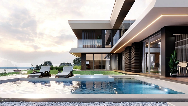 Коттеджный поселок из четырех индивидуальных домов, выполненных в едином современном архитектурном стиле. Для каждого дома предусмотрены индивидуальные парковочные места, собственный бассейн, зоны отдыха и ландшафтное озеленение.