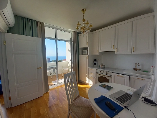 В квартире выполнен качественный, дорогой ремонт. Вся мебель, посуда, техника остаётся. С окна и с балкона открывается панорамный вид на море, город.