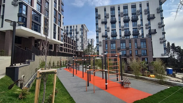Рядом находятся санатории с оборудованными пляжи. вся инфраструктура рядом - школы, садики, магазины, рынок. На территории располагается 2-х этажная автостоянка . Покрытие территории выполнено из брусчатки . Ланшафтный дизайн и множество детских площадок.