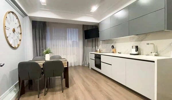 В продаже квартира в доме бизнес класса. Выполнен дизайнерский ремонт. Две изолированные комнаты, зал, отдельная кухня, два санузла. Панорамное остекление. Коммуникации центральные, отопление газовый котел.