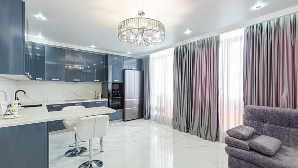 Качественный дизайнерский ремонт из заказных материалов. Новая немецкая кухонная техника. Панорамное остекление. Шесть бесшумных скоростных лифтов, инвалифт. Центральное отопление.