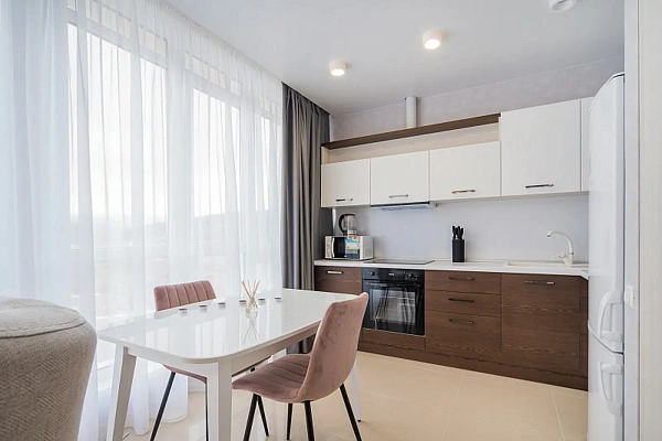 Просторная квартира в новом жилом комплексе в Центре города Сочи. Из квартиры открывается вид на Кавказские горы. Планировка: одна выделенная спальня, кухня-гостиная, совмещенный санузел. Ремонт сделан относительно недавно, а также установлена новая мебель и техника. Квартира полностью готова к проживанию!