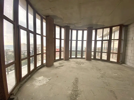 Площадь 800 метров. Пентхаус имеет свободную планировку, панорамное остекление и изящные полукруглые эркеры в залах. Пространство легко планируется. Прямой вид на море.
