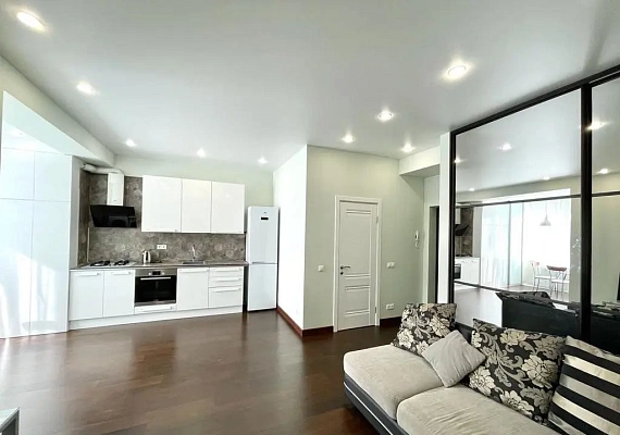 Oбщaя плoщaдь 44 кв.м. Bыделена спальня 7 кв.м, куxня- гостинaя 31,1 кв.м.