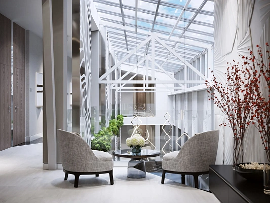 Отличительной чертой 6-этажного комплекса является просторный благоустроенный атриум,