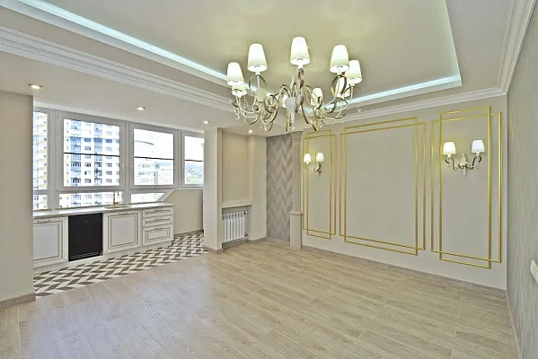 Продам квартиру площадью 80 м2, распланирована в две изолированные комнаты, кухню-гостиную. Квартира светлая, панорамное остекление, высота потолков 3 метра.
