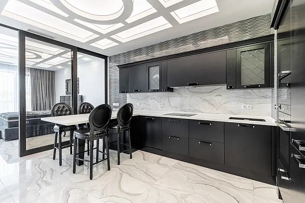 Продаётся элитная квартира площадью 160 кв. метров (3 спальни, зал, кухня столовая, 2 сан узла, гардеробная). Высокие потолки. Дизайнерский ремонт с качественной мебелью и техникой. Терраса с прямым панорамным видом на море!
