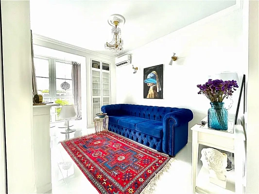 Продам квартиру площадью 45 м2, распланирована в одну изолированную комнату, кухню-гостиную. Квартира светлая, панорамное остекление, высота потолков 3 метра.