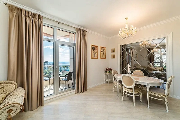 Продам квартиру площадью 60 м2, распланирована в одну изолированную комнату, кухню-гостиную, гардеробную. В квартире выполнен дизайнерский ремонт, прекрасный вид на море.