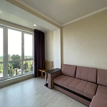 В квартире выполнен новый ремонт, из каждой комнаты открывается вид на зелень и море. Квартира распланирована в кухню-гостинную, взрослую спальню, детскую спальню и совмещенный санузел.