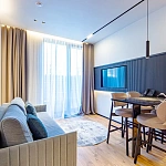 Каждый апартамент укомплектован дизайнерской мебелью и европейской техникой – Egger, Kludi, Italon.
