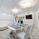 Продается шикарная квартира с дизайнерским ремонтом, общей площадью 100 м2 распланирована в две изолированные комнаты, кухню-гостиную, два с/у, гардеробную. В квартире выполнен роскошный дорогостоящий ремонт, с использованием качественных материалов, эксклюзивн...