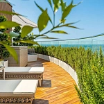 Открытая терраса с шезлонгами и зоной бар...