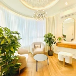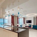 Фасады его изобилируют стеклянными элементами, а сине-белая цветовая гамма символизирует уникальные природно-климатические условия Сочи – теплое ласковое море и заснеженные горные вершины!