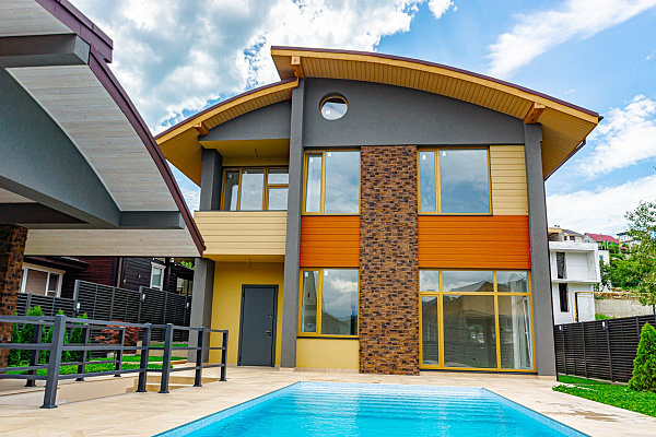 Площадь коттеджа - 180 м2, 2 этажа, просторные комнаты и придомовая территория. Коттедж построен из монолита и блоков, проведены работы по шумоизоляции.