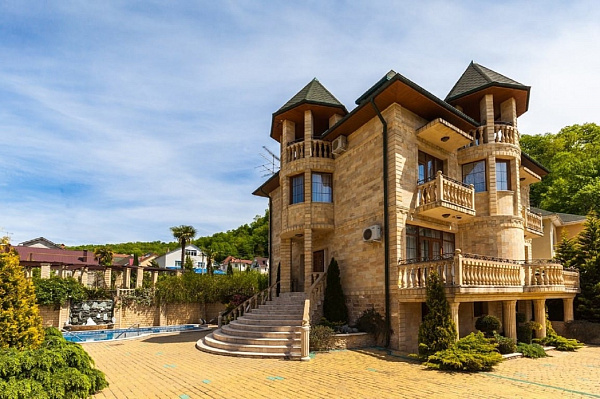 Особняк оформлен в стиле дворцовой классики и полностью меблирован. Территория домовладения около 30 соток с большим плодоносящим садом, бассейном, водопадом, баней, кальянным залом, баней, просторным патио с кухней и мангалом, баней, камином и винным погребом. Рядом есть вся инфраструктура для комфортного проживания и отдыха.