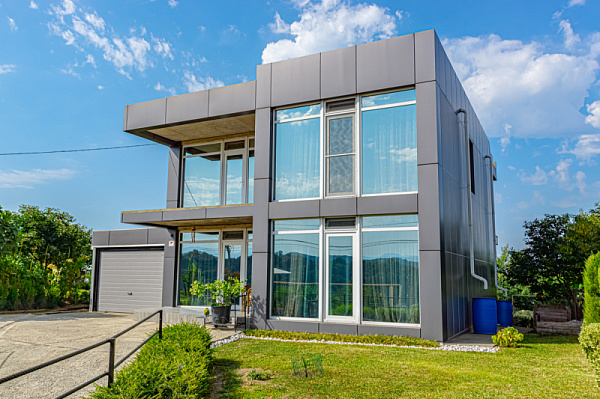 Продается уютный дом в стиле хайтек. 230 м2 + 4 террасы, на участке в 10 соток выполнен ландшафтный дизайн.
