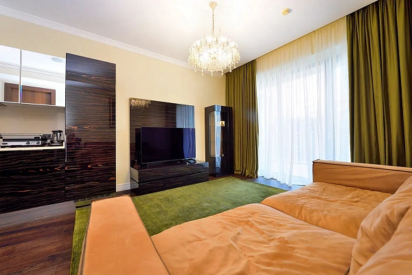 Продается элитная квартира в одном из лучших жилых комплексов горда Сочи – Актер Гэлакси. Отличная планировка: прихожая зона с множеством шкафчиков для хранения вещей, изолированная спальная комната, два санузла и большая кухня-гостиная с выходом на открытую террасу с видом на горы и море. В квартире выполнен отличный дизайнерский ремонт из качественных дорогих материалов. Также квартира полностью укомплектована всей необходимой мебелью и техникой премиальной серии.