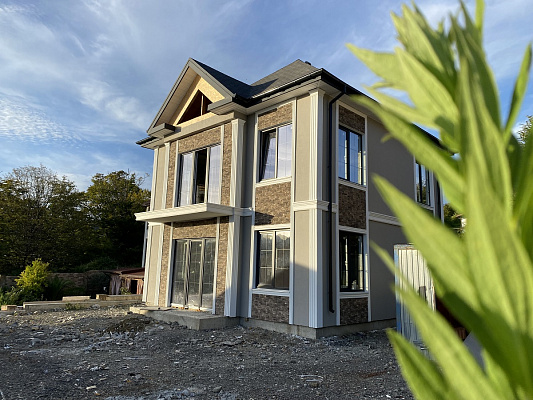 Новый коттедж площадью 150 кв.м., двухэтажный, внутри свободной планировки. Коммуникации: электричество, водоснабжение, газ, канализация. Площадь земельного участка 3 сотки, ровный, в данный момент ведется благоустройство территории.Из дома открывается вид на горы.