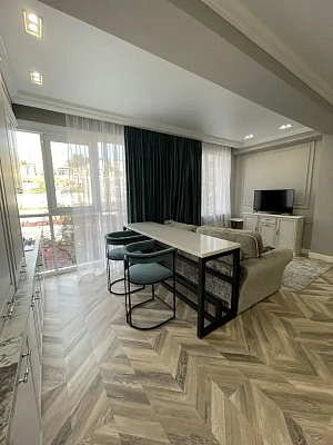 В квартире выполнен ремонт по индивидуальному дизайн-проекту с применением элитных отделочных материалов.