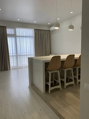 Квартира находиться в элитном комплексе на закрытой территории, в комплексе расположен большой бассейн,спортивная площадка, теннисный корт, игровая зона! Из окна открывается красивый вид на море и побережья города Сочи. В квартире дизайнерский ремонт с качественного материала и хорошая мебель с встроенной техникой. В квартире не кто жил все новое!