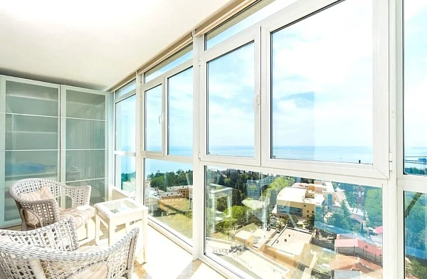 Полноценная двухкомнатная квартира. Гостиная с панорамным видом на море и Морской порт,кухня-столовая, спальня, гардеробная,кладовка. Из всех комнат открывается шикарный вид. Санузел раздельный. В ванной комнате душевая кабина и джаузи.