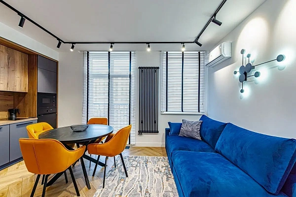 Квартира светлая, уютная, с яркими дизайнерскими акцентами в интерьере.