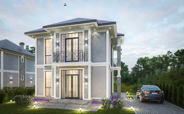 Ландшафтный дизайн и паркинг входят в стоимость коттеджа. Коммуникации центральные, канализация ЛОС.