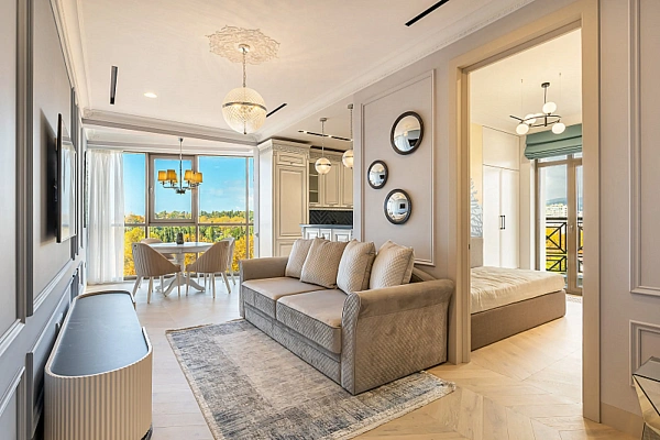 В квартире сделан современный ремонт, остается мебель и техника. За счет панорамного остекления в помещение проникает большое количество света. Квартира сделана с душой, вся мебель и техника остается новому владельцу.