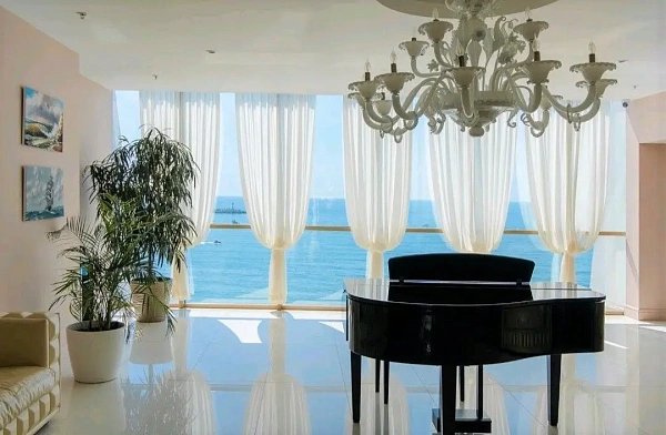 Апартаменты с новым дизайнерским ремонтам в центре Сочи, общая площадь 45м2, просторная кухонная зона совмещенная со спальной зоной, новая мебель и техника именитых брендов, элементы декора, теплый пол, панорамное остекление, кондиционер, центральные коммуникации.