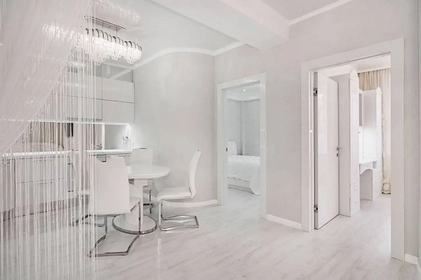 Отличное планировочное решение: просторная кухня-гостиная, три спальни и балкон. Квартира полностью укомплектована мебелью и техникой. Имеются электрические тёплые полы, 4 кондиционера. Панорамные окна с видом на море и горы.