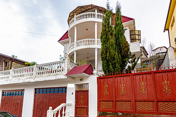Дом в три этажа. Отдельным уровнем расположен гараж. На первом этаже расположены: просторная кухня- гостинная, большой санузел, две спальные комнаты. На втором этаже расположены три спальные комнаты, санузел, гардеробная. И третий этаж располагает несколькими подсобными комнатами, ещё одной спальней, санузлом и небольшой кухней. Необходимо отметить высоту потолков, она составляет 3.5 м, а также планировку комнат - они правильной квадратной формы. На территории дома отдельным зданием расположен дом для обслуживающего персонала.