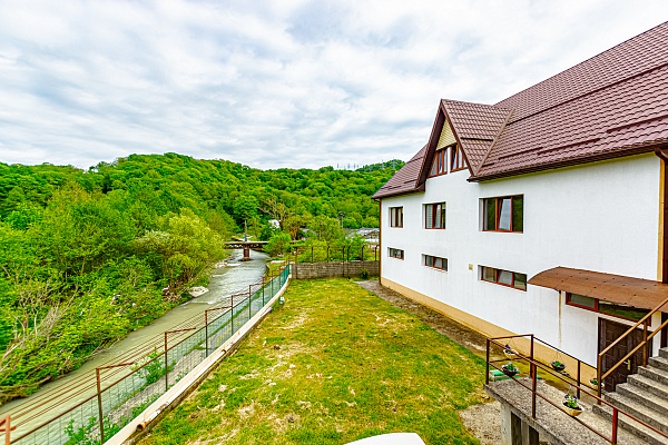 Предлагаю к продаже; домовладение 506 кв м на участке 12 соток в курортном поселке Лоо. Дом расположен в 1.5 км. от береговой линии на берегу реки с шикарным видом на горы в тихом очаровательном месте.