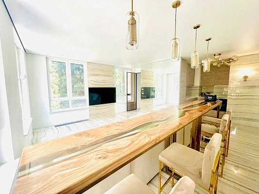 Дизайнерский ремонт из высококачественных материалов, мебель и техника известных брендов.