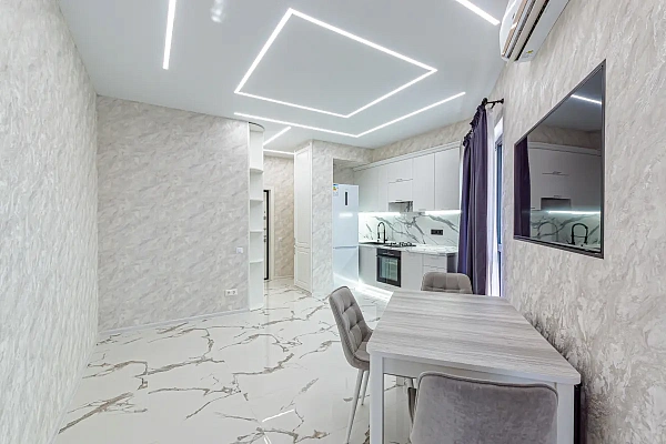 Квартира полностью мебелирована и оборудована всей необходимой техникой. Качественная кухня, санузел совмещенный и отделанный керамогранитом с сантехникой высокого качества придадут вашему комфорту особый шарм.