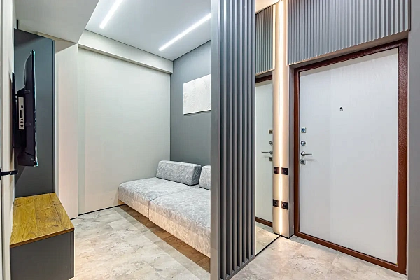 Выполнен современный дизайнерский ремонт.
