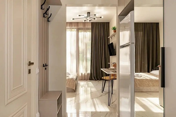 Особенностью расположения является развитая инфраструктура района, включающая в себя: Курортный променад г. Сочи, набережная реки Псахе, оборудованный пляж, гастрономические ярмарки и сетевые магазины, торговые галереи, ТРЦ Моремолл, лучшие рестораны и прочие объекты необходимой инфраструктуры. Конкурентными преимуществами являются локация объекта, закрытая территория, всесезонный бассейн, зона тренажеров, полноценный бизнес-класс, малоэтажная застройка, дизайнерское озеленение, привезенное из Италии, личные террасы и идеальный подъезд.