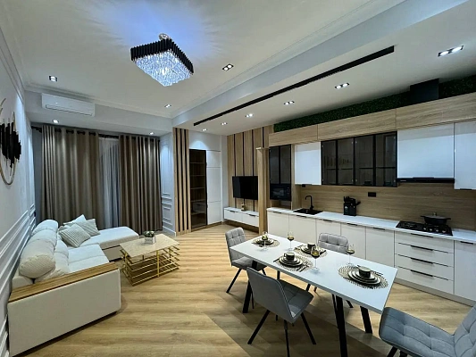 - В квартире выполнен новый дизайнерский ремонт, установлена дорогая мебель и техника. В квартире так же оборудован свой собственный винный шкаф.