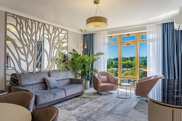 Из окон открываются потрясающие виды на море и зеленые просторы. Ремонт сделан из премиальных материалов в спокойных, теплых тонах.