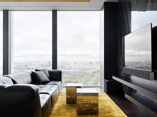 Начинку интерьера: вентиляцию, кондиционирование, «умный дом». Аудиосистема с привязками к определенным зонам, рулонные и обычные шторы с электроприводом, управление освещением — все централизовано и максимально удобно. «Светильники завязаны в единую систему, управление которой осуществляется с внешних панелей и телефона и позволяет с легкостью включать/выключать освещение отдельных зон, регулировать яркость или использовать определенные сценарии, в том числе задействуя шторы.