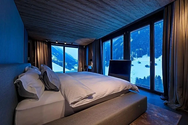 Благодаря большим витражным окнам из апартаментов открывается потрясающий вид на горы.