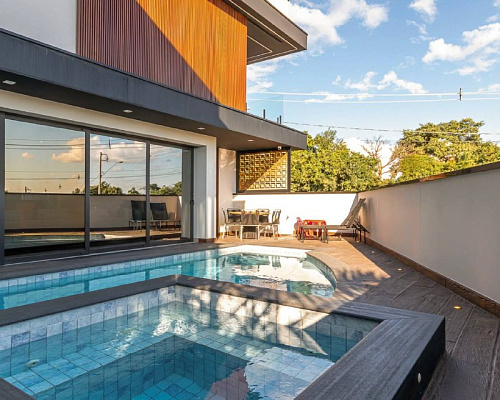 В доме выполнен современный ремонт из качественных материалов. На территории самой виллы располагается подогреваемый бассейн, зона барбекю, летняя кухня и зона отдыха.