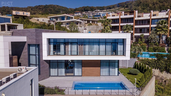 Двор: паркинг на 4 м/м с автоматическими воротами, бассейн с подогревом, зона барбекю, открытый душ, видеонаблюдение, помещение под котельную и оборудование для бассейна, тренажёрный зал.
